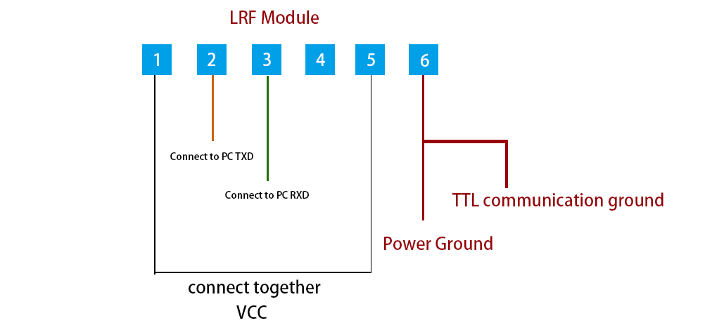 d) A extremidade superior do computador realiza testes de reticulação com o conector 0.8WTB-6AB-01 da extremidade da máquina de medição de distância (Yueqing Huabao) através do conector 0.8WTB-6Y-2. As definições dos pinos da fonte de alimentação e da porta de comunicação na extremidade do telêmetro são mostradas na Tabela 1, e as posições dos pinos do conector são mostradas na Figura 3.